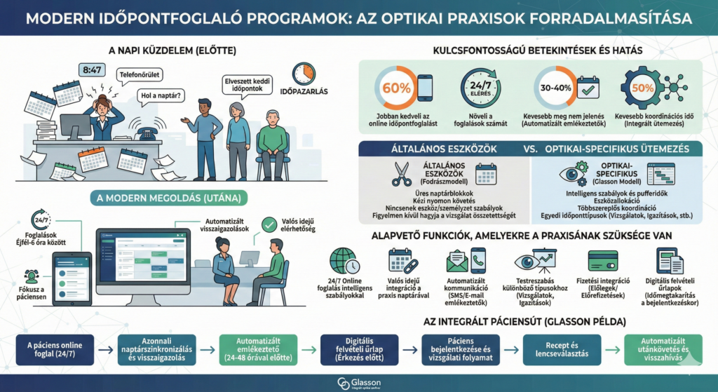 Íme, miért választanak az optikai praxisok Glasson-ös integrált platformot az önálló foglalási eszközök helyett: