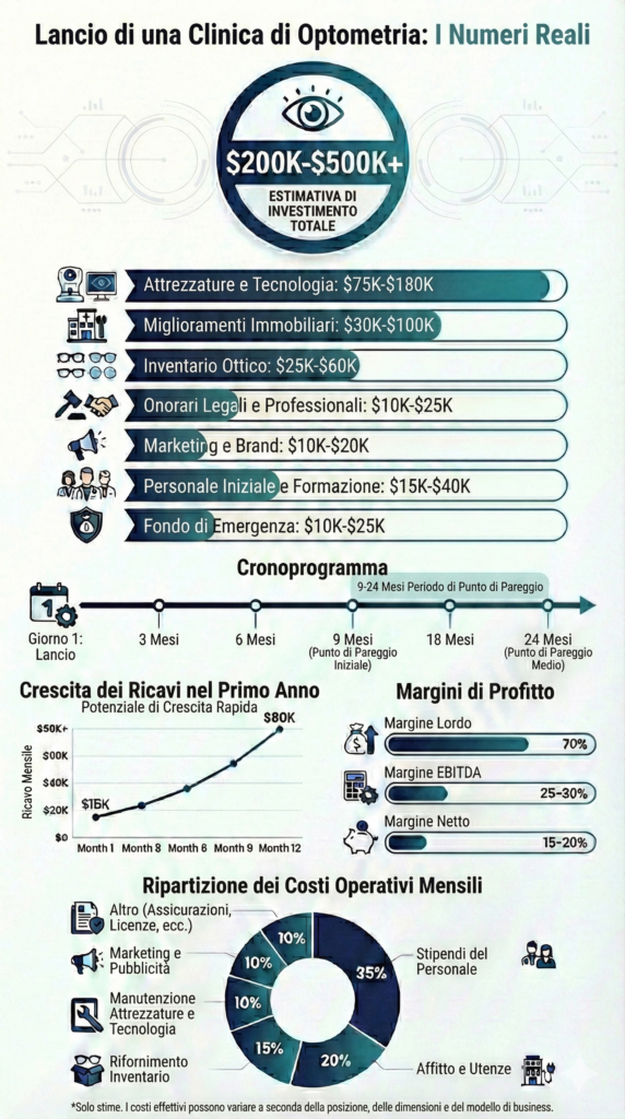 - Il costo reale: aprire una clinica di optometria con servizi completi richiede un capitale iniziale compreso tra 200.000 e 500.000 dollari, prima ancora di visitare il primo paziente.